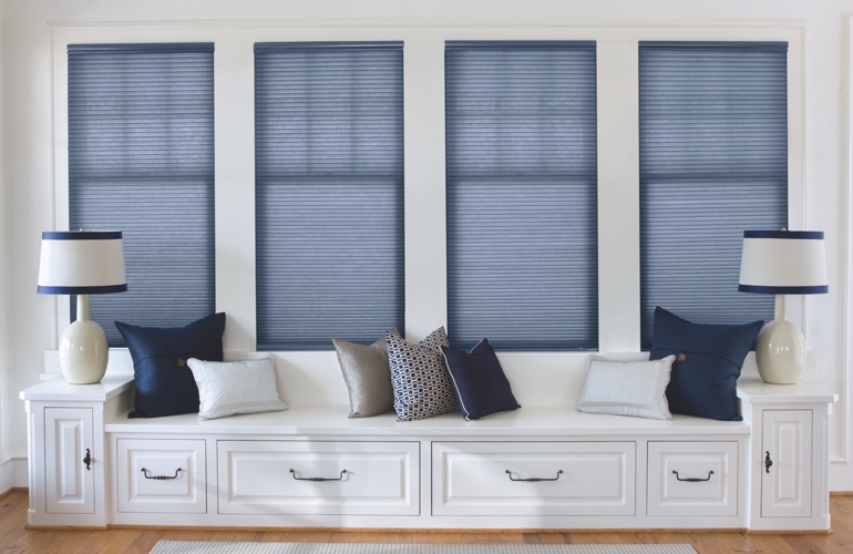 Another great blind upgrade are cellular (or honeycomb) shades. They’re made to trap more heat than regular shades, are simple to use, and offer a ton of options in the way of colors, patterns, fabrics and more.